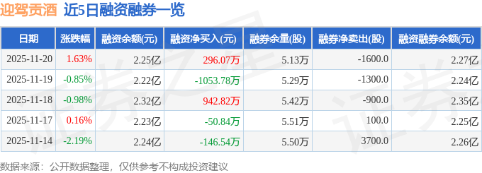 迎驾贡酒融资融券信息显示,融资方面,当日融资买入2539.04万元,融资偿还2242.98万元,融资净买入296.07万元。融券方面,融券卖出100.0股,融券偿还1700.0股,融券余量5.13万股,融券余额220.08万元。融资融券余额2.27亿元。