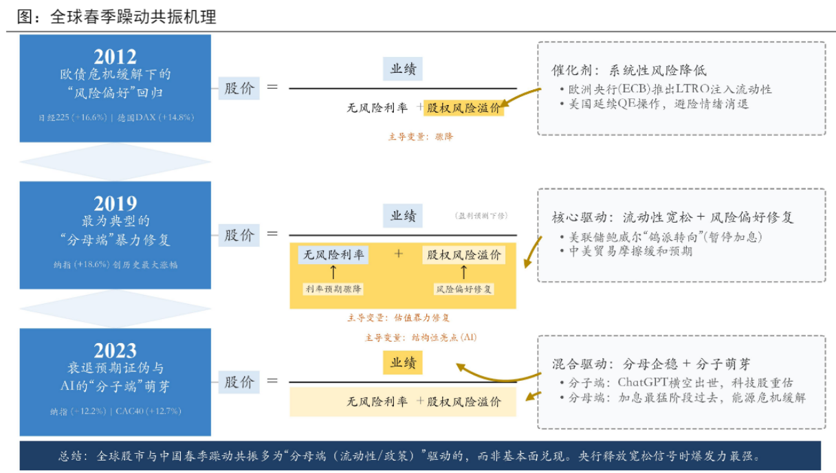 4、强躁动包括2012、2019年,共性特征在于全球范围内分母端的宽松,而弱躁动(如16、17、22年)往往在分子端或风偏维度存在压力,分子端不弱、流动性有改善,且外部冲击不大的情况下,春季躁动大概率不会太弱