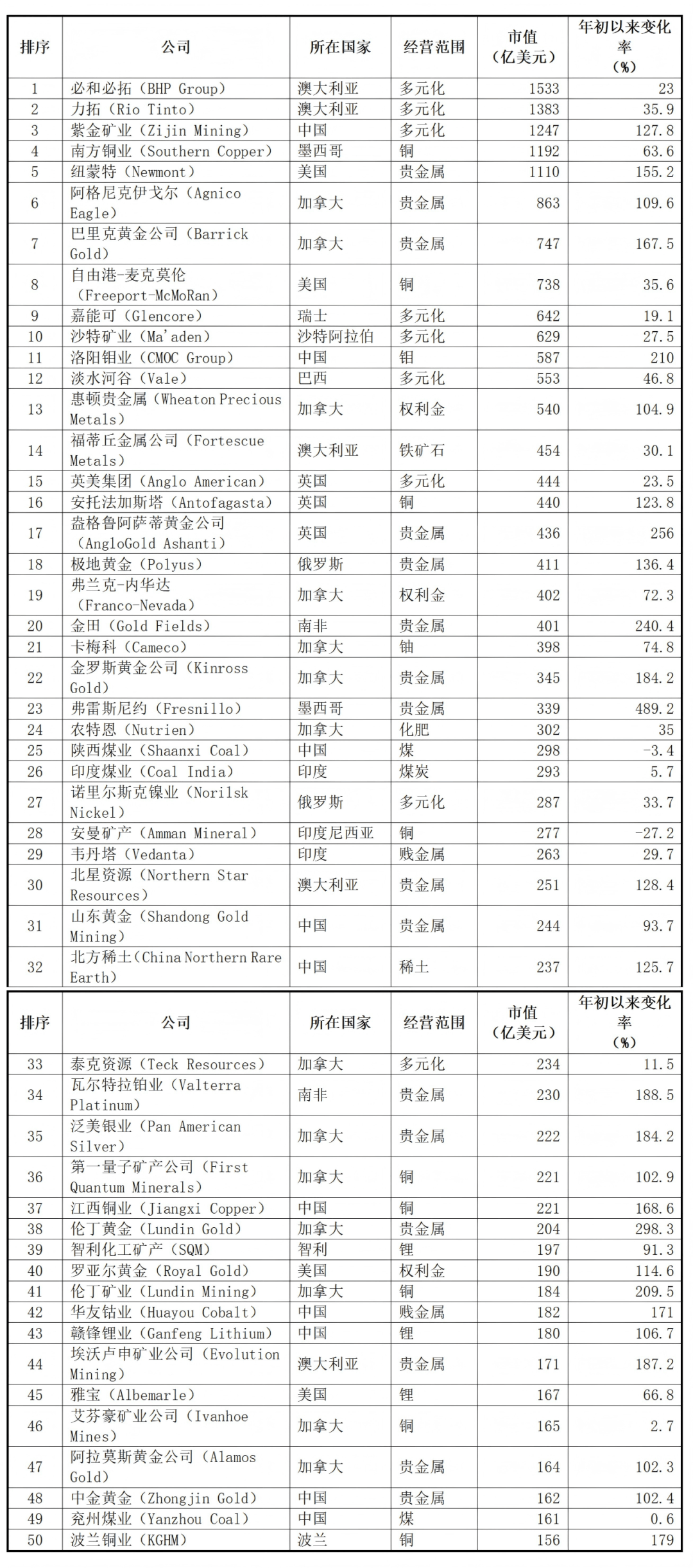 2025全球矿业股市值TOP50出炉!10家中国企业上榜(附榜单)股市资讯官网_今日大盘行情分析+热门牛股推荐_股民必看的投资指南