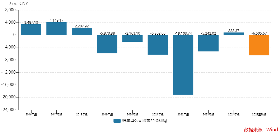 龙韵股份近年常现亏损,2019年至2023年公司连续亏损5年,2024年盈利833.37万元。短暂扭亏后,去年公司再陷亏损。