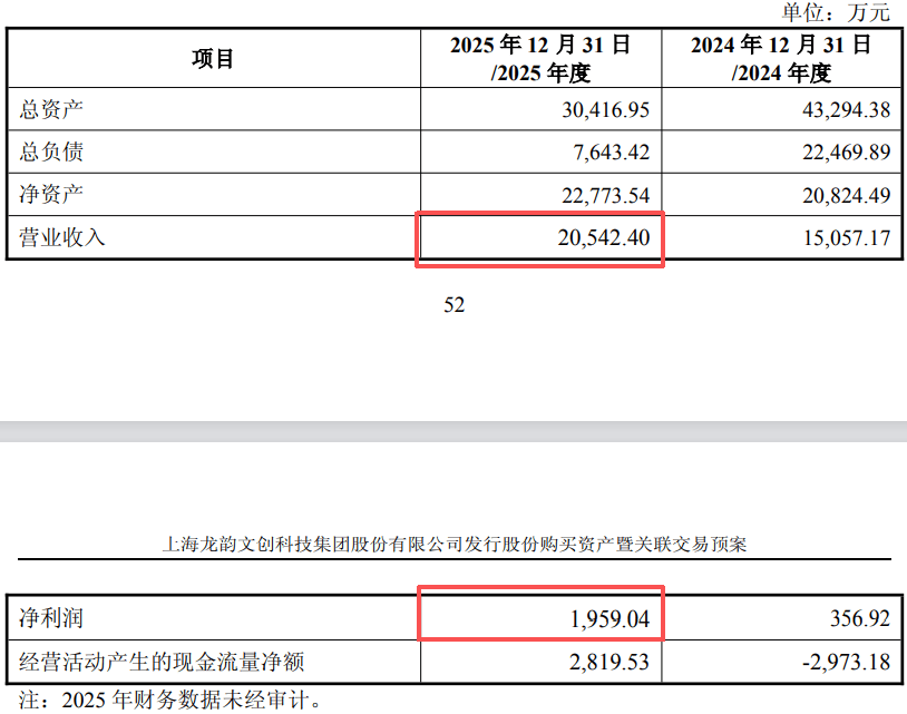 根据龙韵股份2025年半年报,愚恒影业上半年营业收入1.70亿元,净利润只有499.03万元。可算得,标的公司在去年下半年期间营业收入降至3,500万元,净利润却飙升至1,460.01万元。