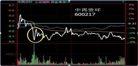 4、出货完毕后股票恢复正常交易状态,成交量突然萎缩,随着交易慢慢变得清淡,成交量极度萎缩,股价从此步入漫漫阴跌之路,被套股民无论在时间还是价格空间上都将遭受巨大折磨。