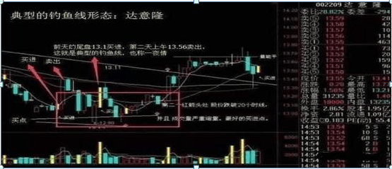 先把股价拉抬到高位,然后利用对敲稳步推升股价,吸引跟风盘,当有足够多的跟风盘后,把自己买单全部撤掉,并将盘面上的全部买盘打掉,随后,股价会出现反弹,重新吸引买盘。因图形酷似钓鱼的形状,故称作钓鱼线的交易制度,并且不能做空,虽然暂时有一定的浮动盈利,由于不能卖出,第二天低开后将全部套牢。