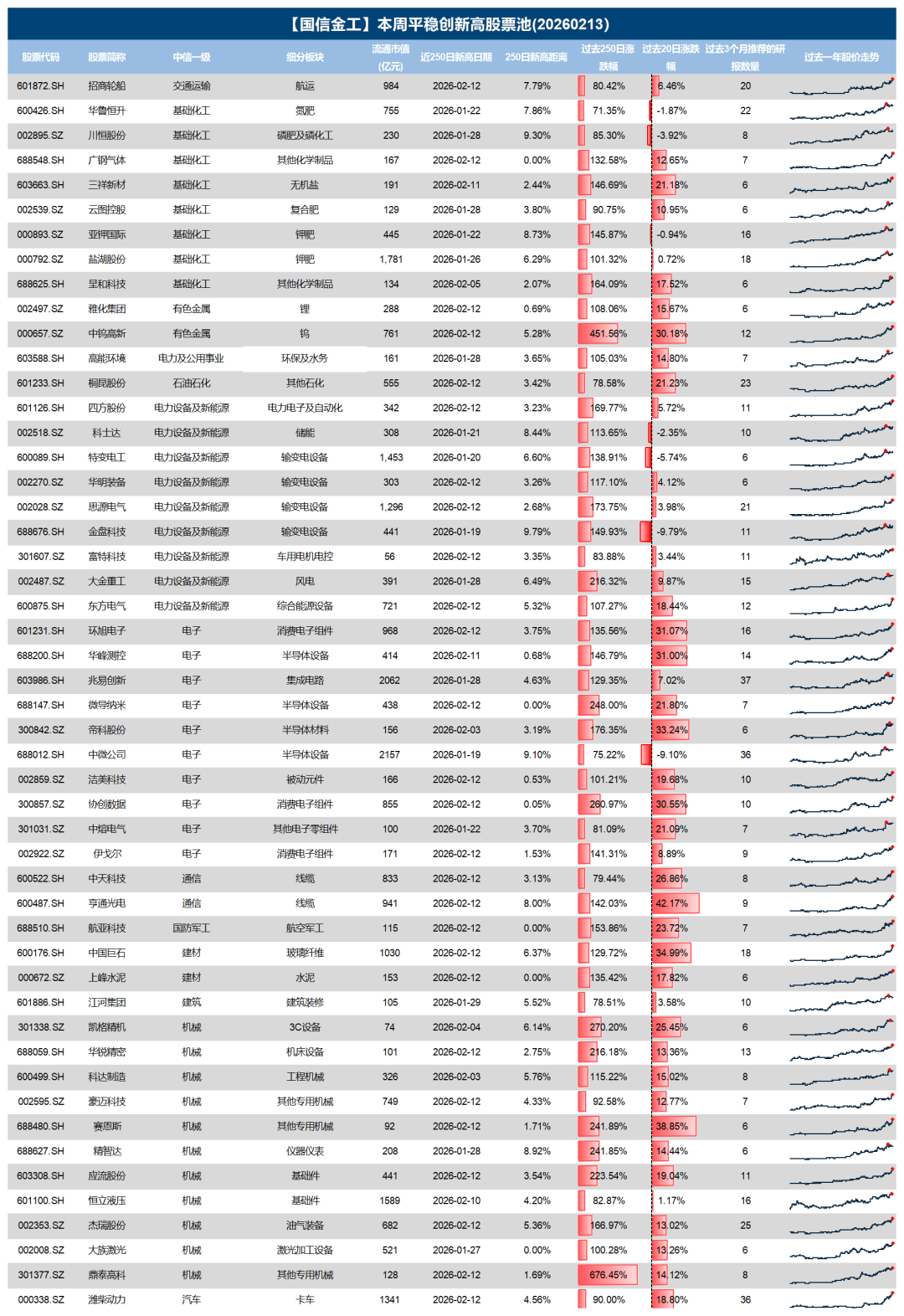 注:本文选自国信证券于2026年2月13日发布的研究报告《由创新高个股看市场投资热点(第231期)》